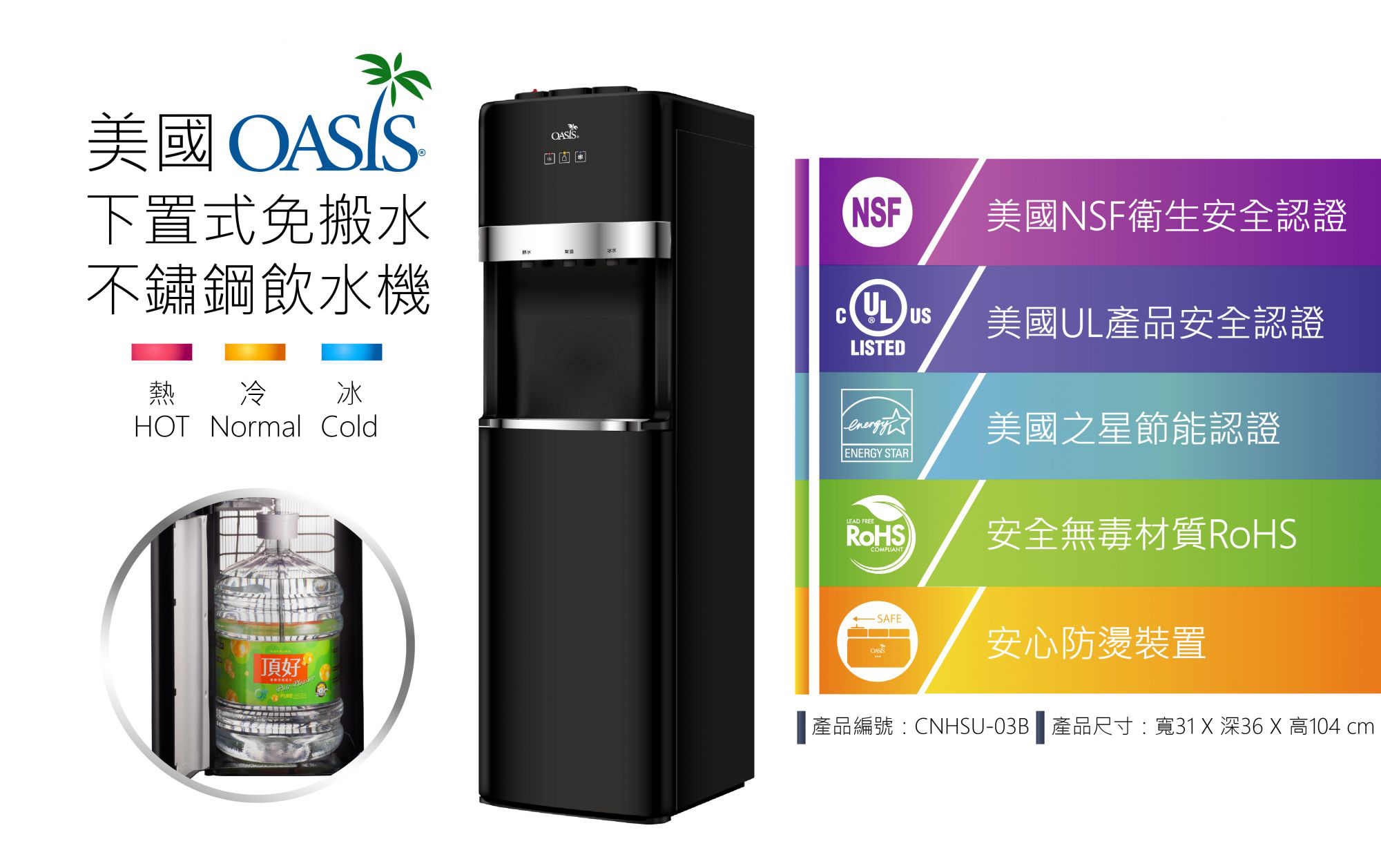 OASIS下置式三溫飲水機(黑)+富士の湧水